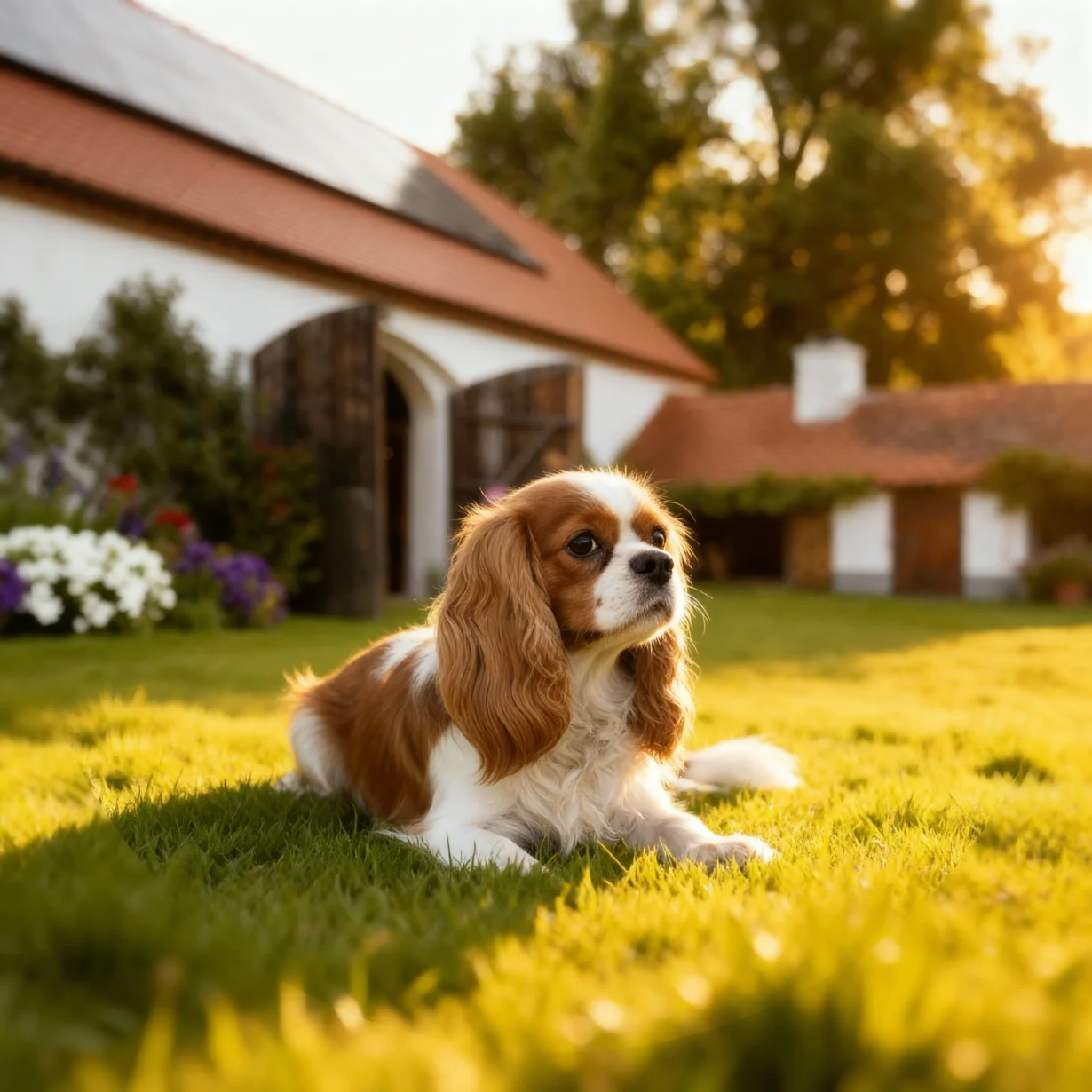 V srdci venkova, v prostředí plném klidu, květin a slunečního světla, žijí naši Cavalier King Charles španělé. Tito elegantní psi jsou našimi společníky, přáteli i členy rodiny.